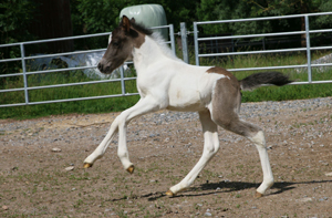 "Leichtfüßiges Fünfgangfohlen mit sehr guten Bewegungen, etwas wenig Aufrichtung.