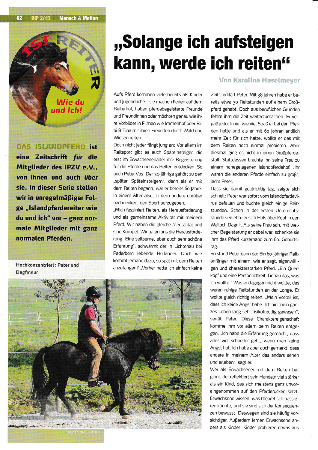 IPZV April 2015 - Dagfinnur vom Glockenhof und Peter Vos - Reiten im Alter